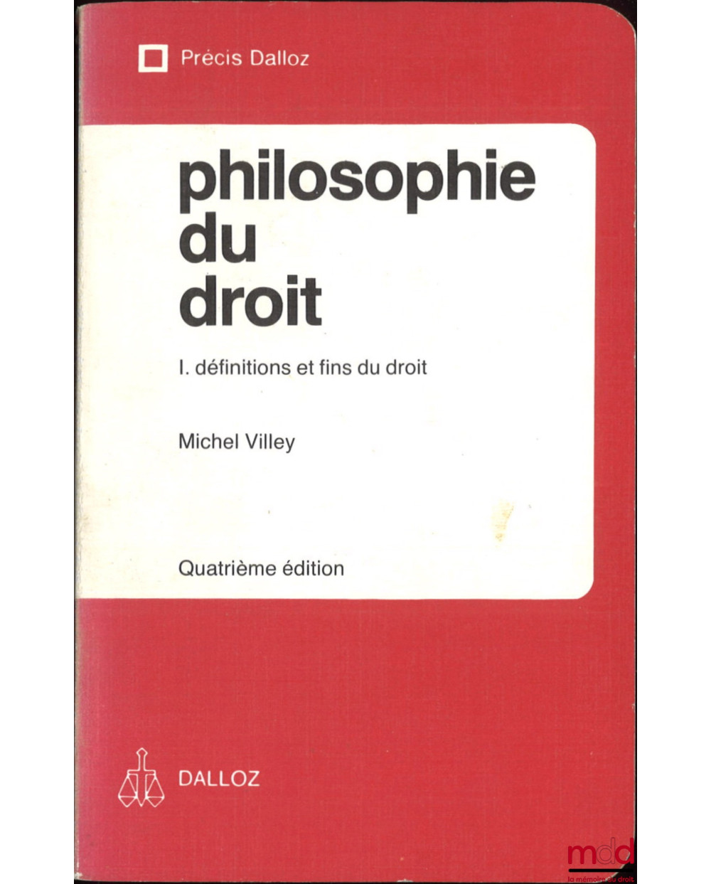 PHILOSOPHIE DU DROIT, t. I [seul] : définitions et fins du droit, 4e éd., coll. Précis Dalloz