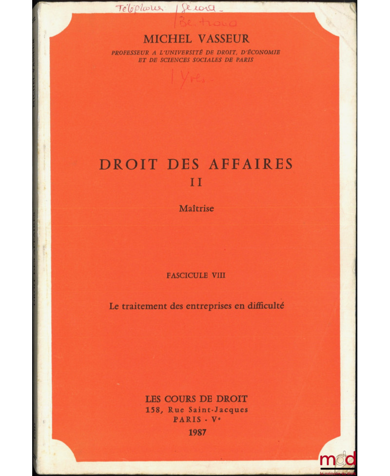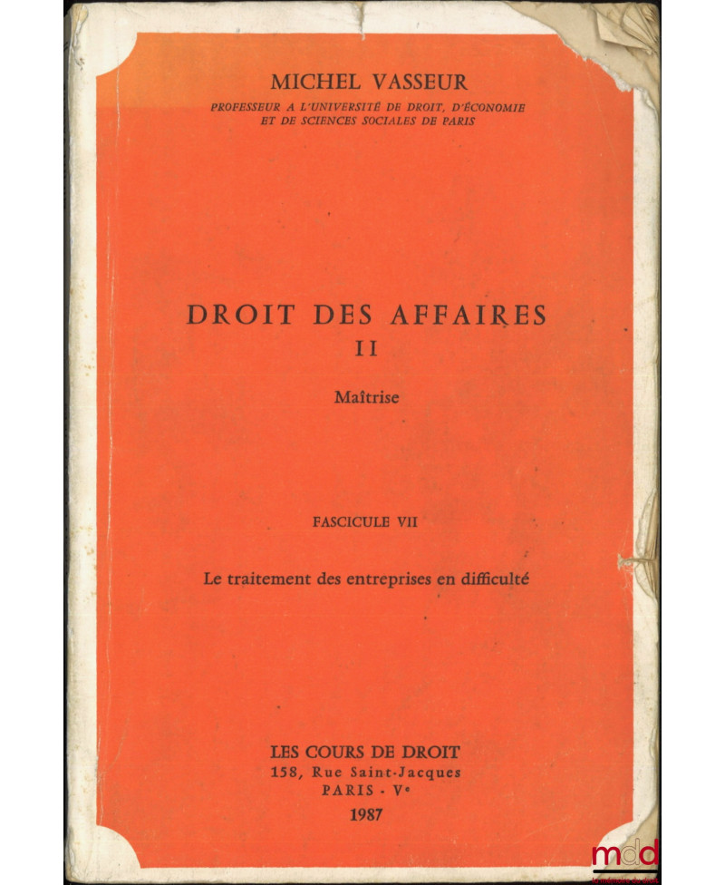 DROIT DES AFFAIRES, Maîtrise, Fasc. VII et VIII [seuls] : Le traitement des entreprises en difficulté