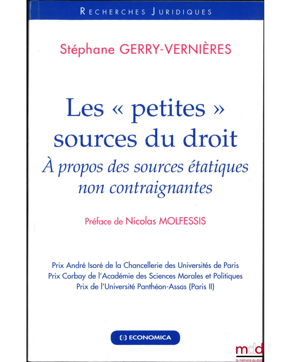 LES « PETITES » SOURCES DU DROIT, À propos des sources étatiques non contraignantes, Préface de Nicolas Molfessis, coll. Recherches juridiques