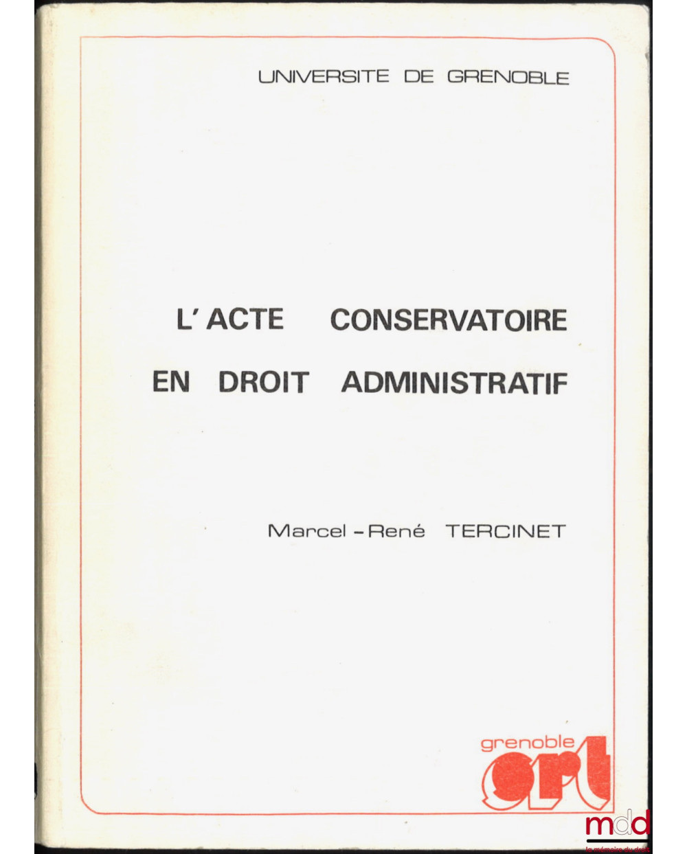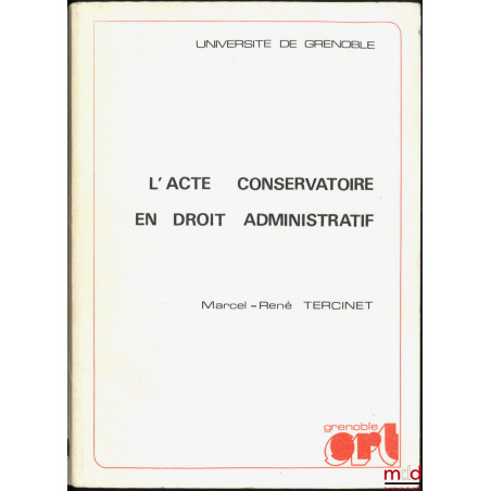 L’ACTE CONSERVATOIRE EN DROIT ADMINISTRATIF, Thèse, Université de Grenoble