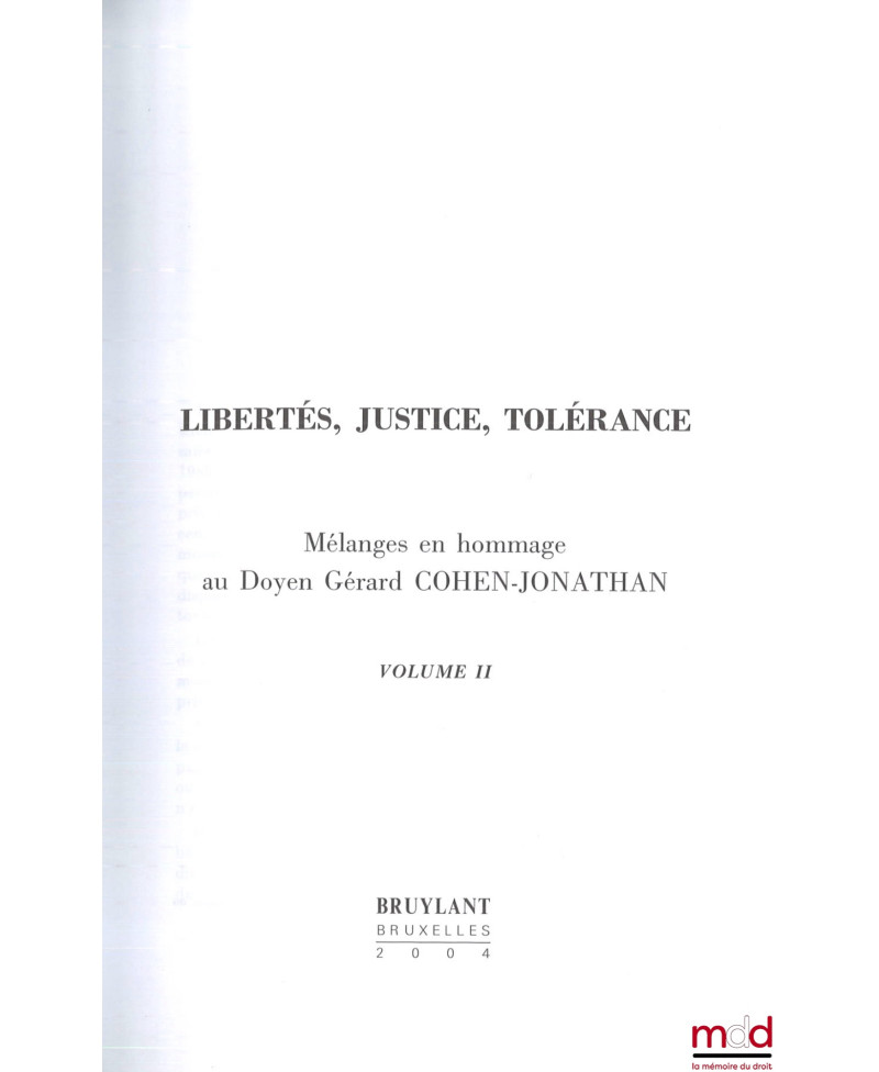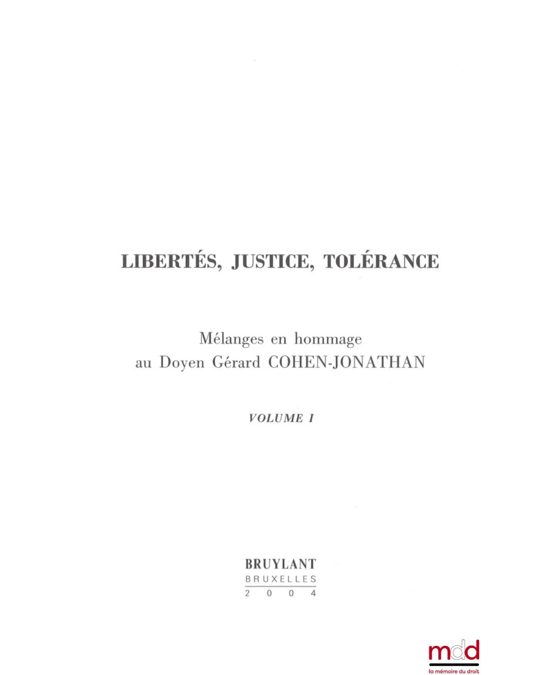 LIBERTÉS, JUSTICE, TOLÉRANCE, Mélanges en hommage au Doyen Gérard Cohen-Jonathan