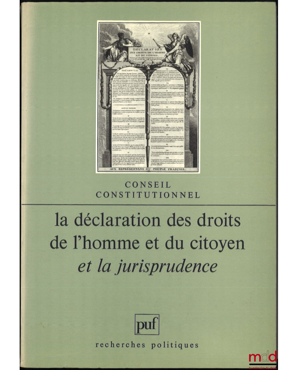 LA DÉCLARATION DES DROITS DE L’HOMME ET DU CITOYEN ET LA JURISPRUDENCE, colloque des 25 et 26 mai 1989 au Conseil constitutionnel, coll. Recherches politiques