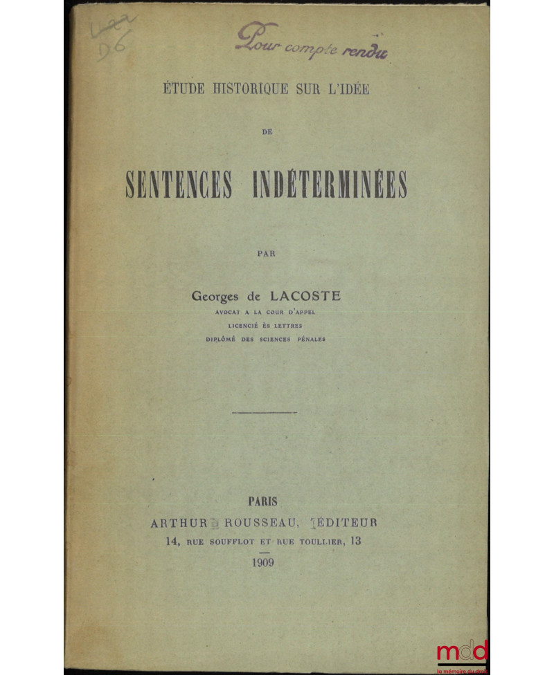 Description : in-8, br., non coupé, ENVOI DE L’AUTEUR, (dos renforcé au ruban adhésif, marques de tampons), int. frais, VIII-351 p.