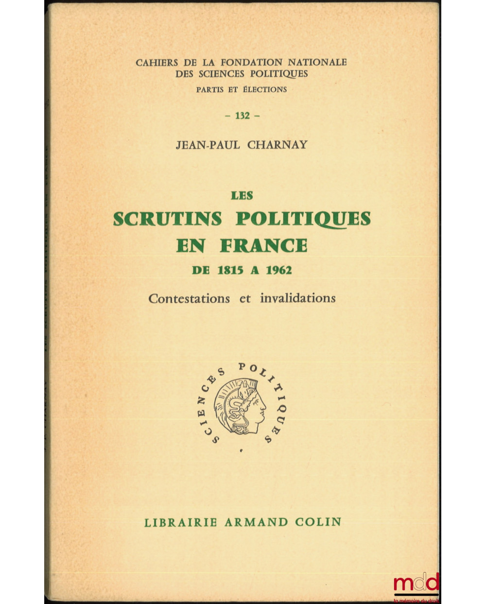 LES SCRUTINS POLITIQUES EN FRANCE DE 1815 À 1962, CONTESTATIONS ET INVALIDATIONS, Cahiers de la fondation nationale des sciences politiques, série Partis et élections, n° 132