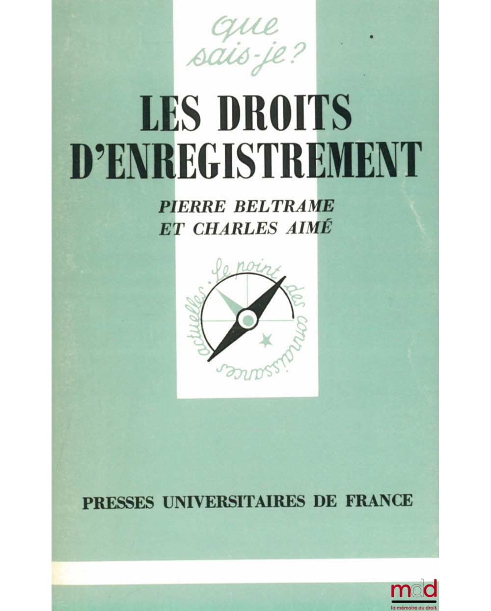 LES DROITS D’ENREGISTREMENT, coll. Que sais-je ?