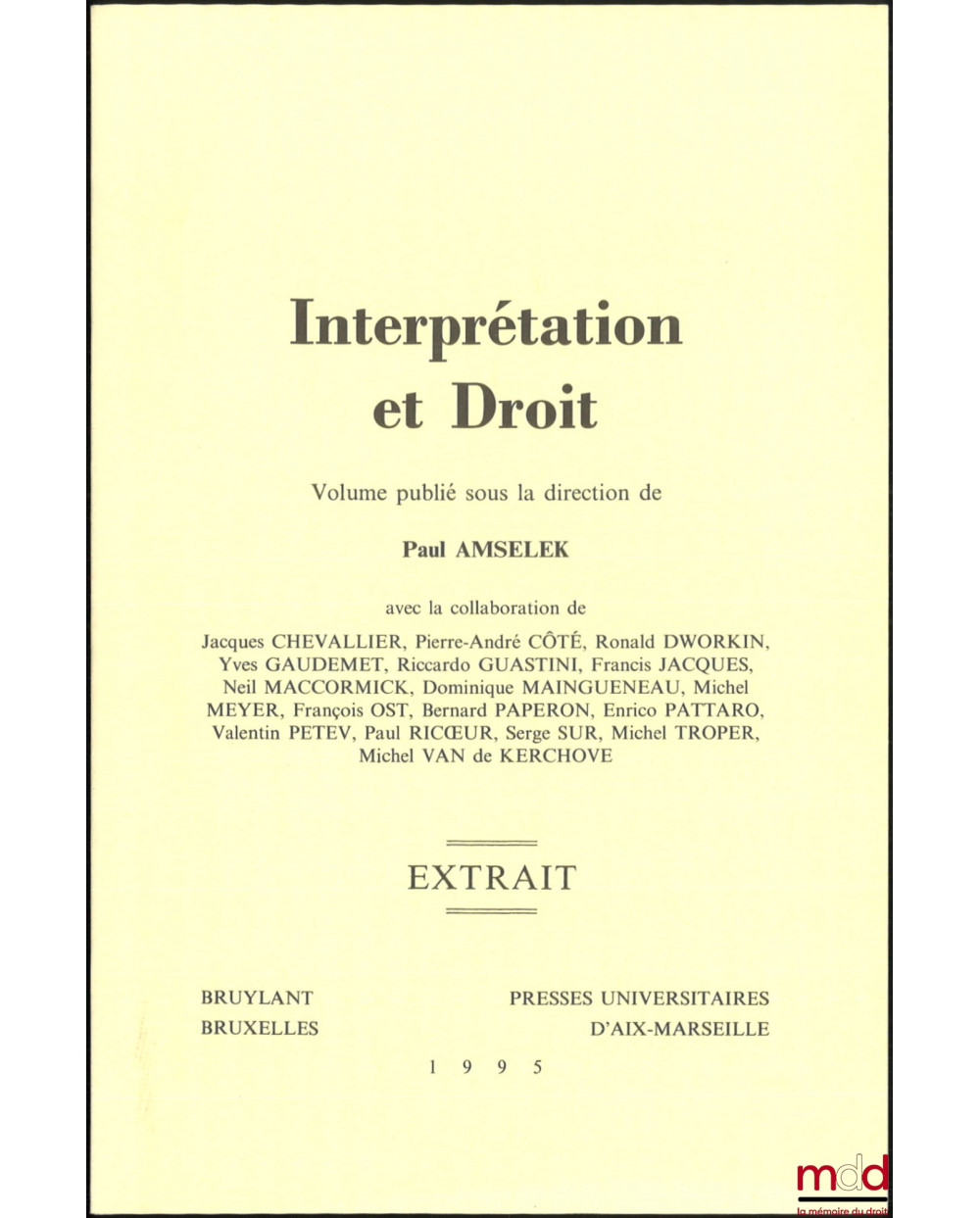 FONCTION INTERPRÉTATIVE ET FONCTION LÉGISLATIVE : AMÉNAGEMENTS JURIDIQUES ET LEURS RAPPORTS, [Extrait de] Interprétation et droit
