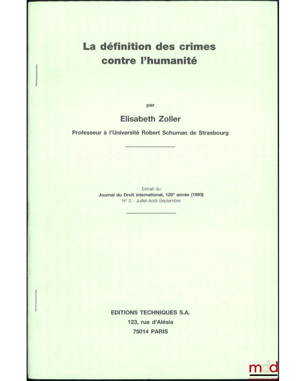 LA DÉFINITION DES CRIMES CONTRE L’HUMANITÉ, Extrait du Journal du Droit international, 120e année (1993), n° 3 - Juillet-Août-Septembre