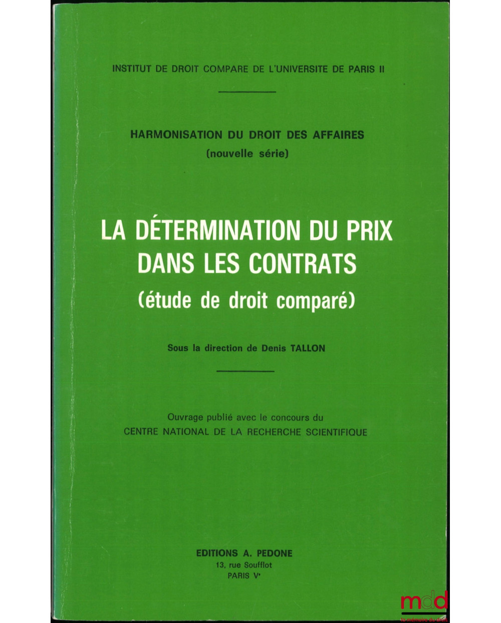 LA DÉTERMINATION DU PRIX DANS LES CONTRATS (Étude de droit comparé), dir. Denis Tallon, Institut de droit comparé de l’Université Paris II, Série Harmonisation du droit des affaires