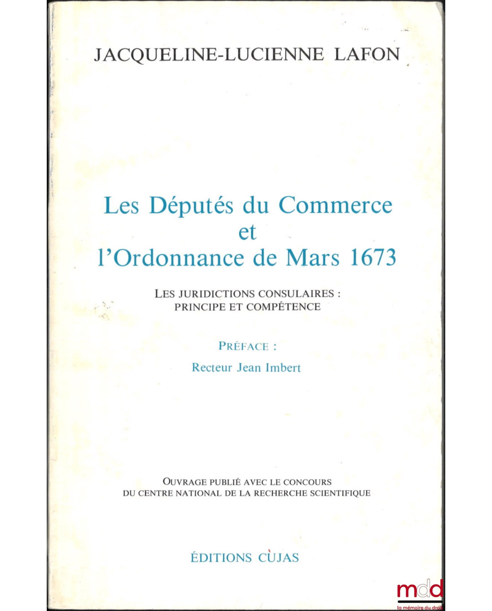 LES DÉPUTÉS DU COMMERCE ET L’ORDONNANCE DE MARS 1673, Les juridictions consulaires : Principe et compétence, Préface de Jean Imbert