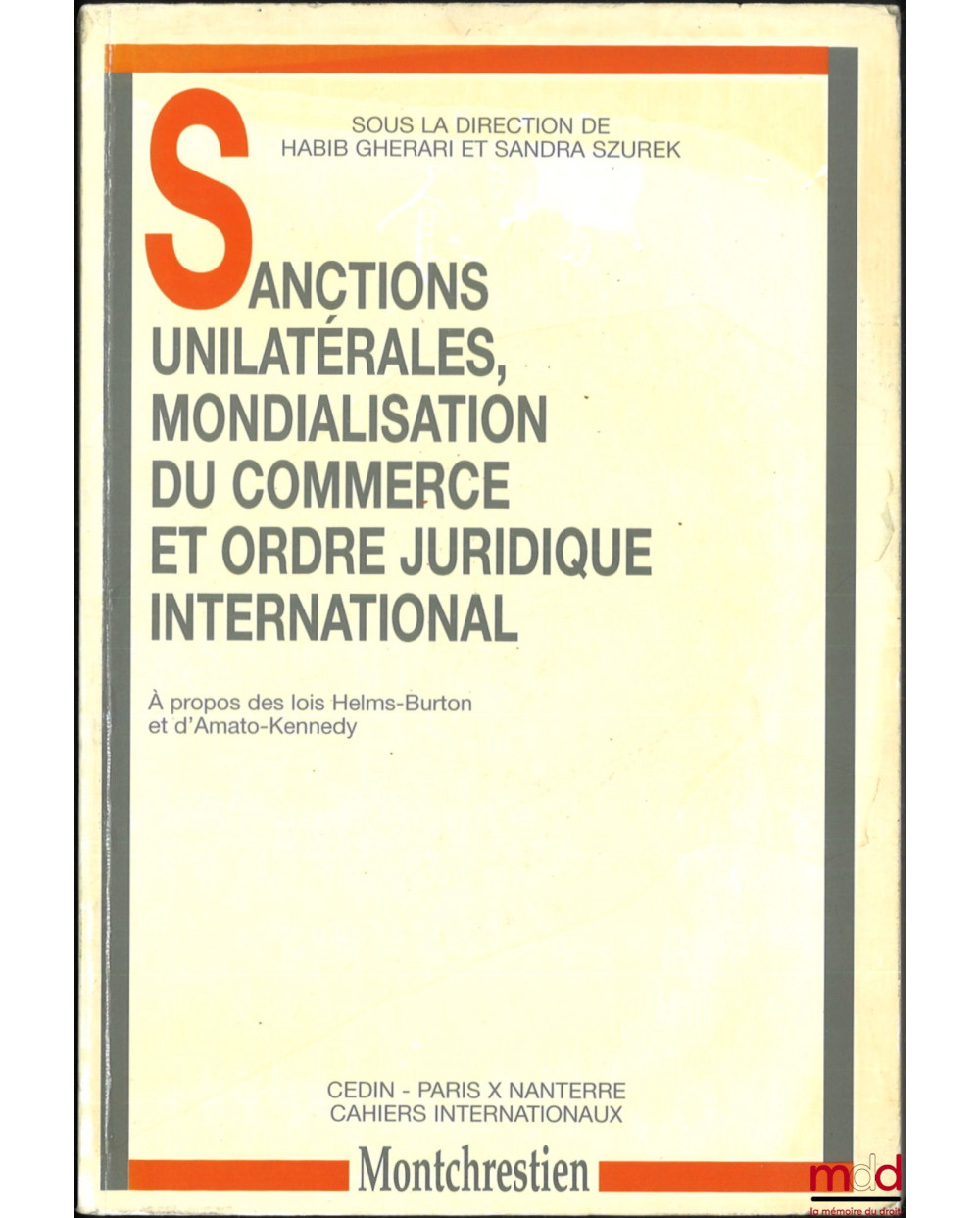 SANCTIONS UNILATÉRALES, MONDIALISATION DU COMMERCE ET ORDRE JURIDIQUE INTERNATIONAL, À propos des lois Helms-Burton et d’Amato-Kennedy, dir. Habib Gherari et Sandra Szurek, Journée d’actualité juridique 31 janvier 1997, CEDIN, Cahiers internationaux