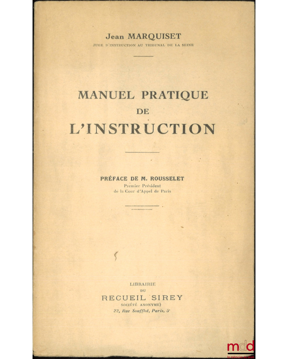 MANUEL PRATIQUE DE L’INSTRUCTION, Préface de M. ROUSSELET