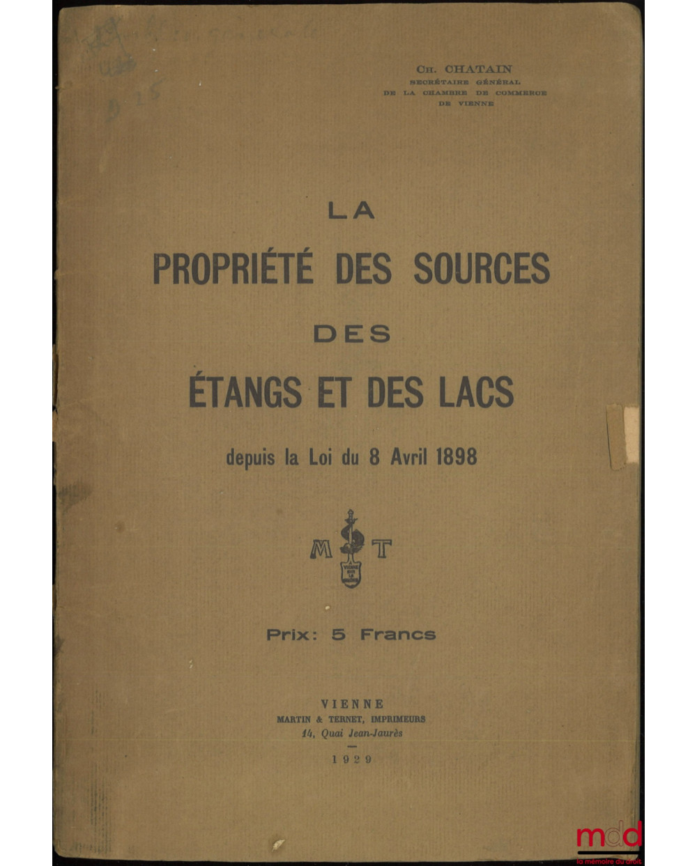 LA PROPRIÉTÉ DES SOURCES, DES ÉTANGS ET DES LACS, depuis la Loi du 8 Avril 1898
