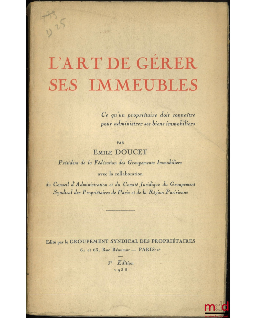 Editeur : Groupement syndical des propriétaires
