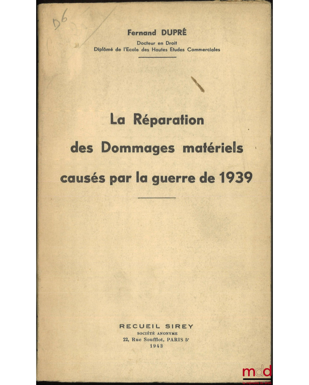 LA RÉPARATION DES DOMMAGES MATÉRIELS CAUSÉS PAR LA GUERRE DE 1939