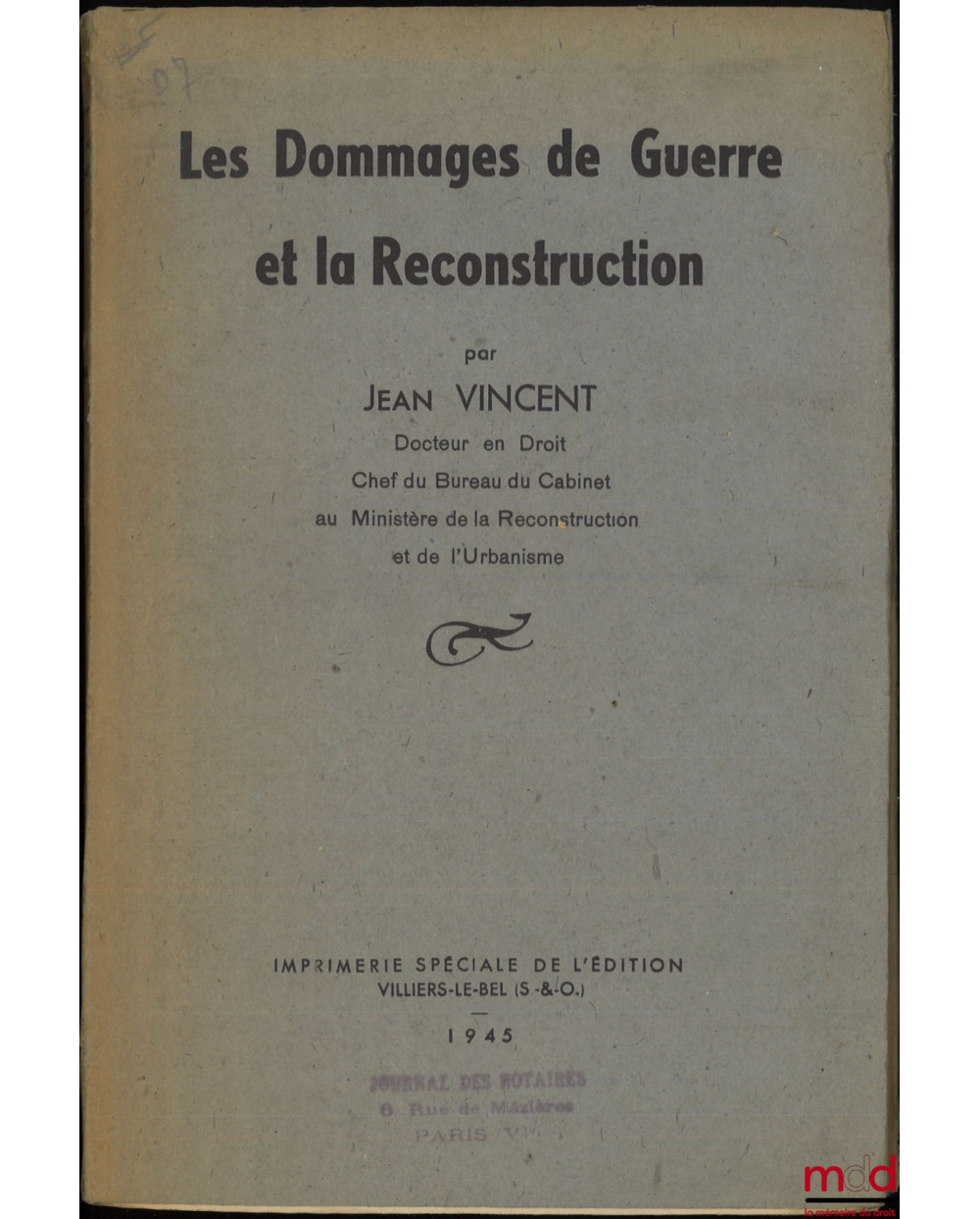 LES DOMMAGES DE GUERRE ET LA RECONSTRUCTION