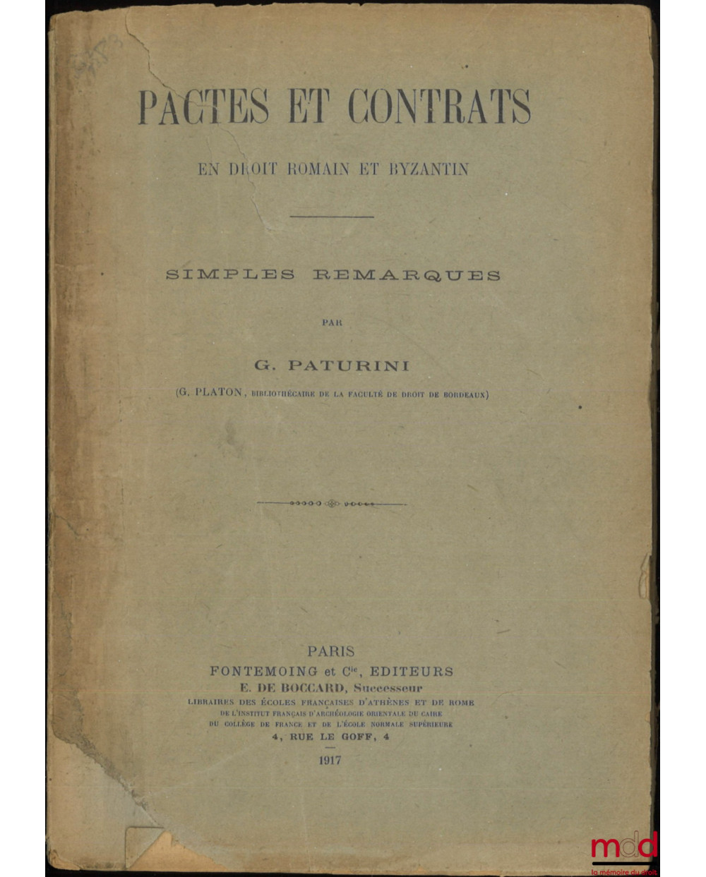 PACTES ET CONTRATS en droit romain et byzantin, Simples remarques