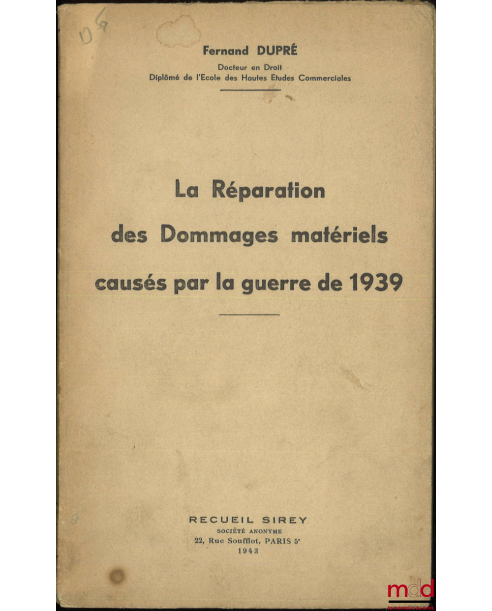 LA RÉPARATION DES DOMMAGES MATÉRIELS CAUSÉS PAR LA GUERRE DE 1939