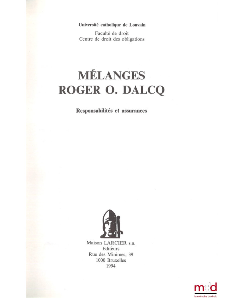 MÉLANGES ROGER O. DALCQ, Responsabilités et assurances, Université catholique de Louvain