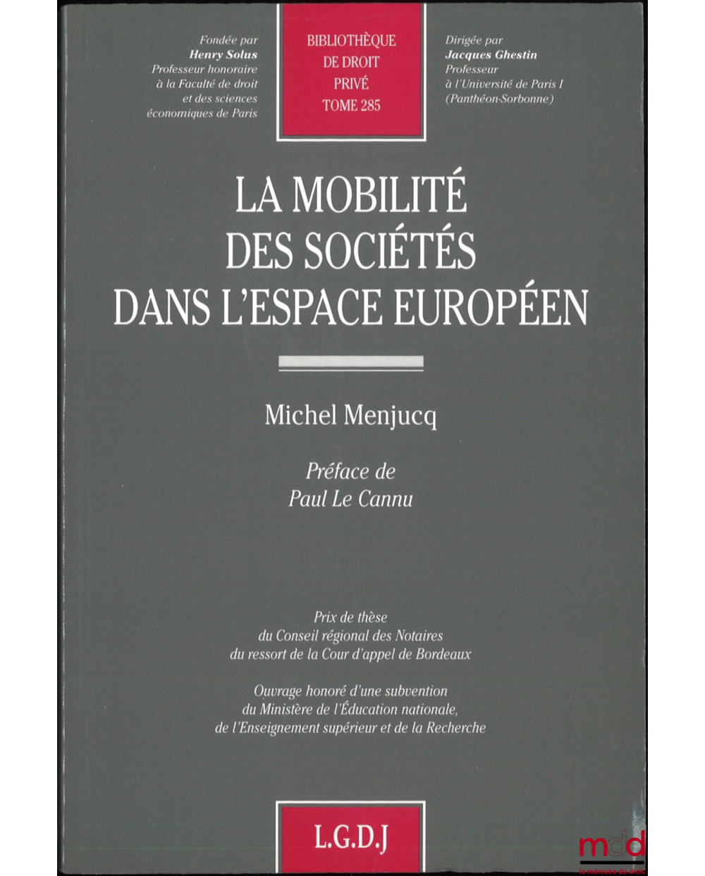 LA MOBILITÉ DES SOCIÉTÉS DANS L’ESPACE EUROPÉEN, Préface de Paul Le Cannu, Bibl. de droit privé, t. 285