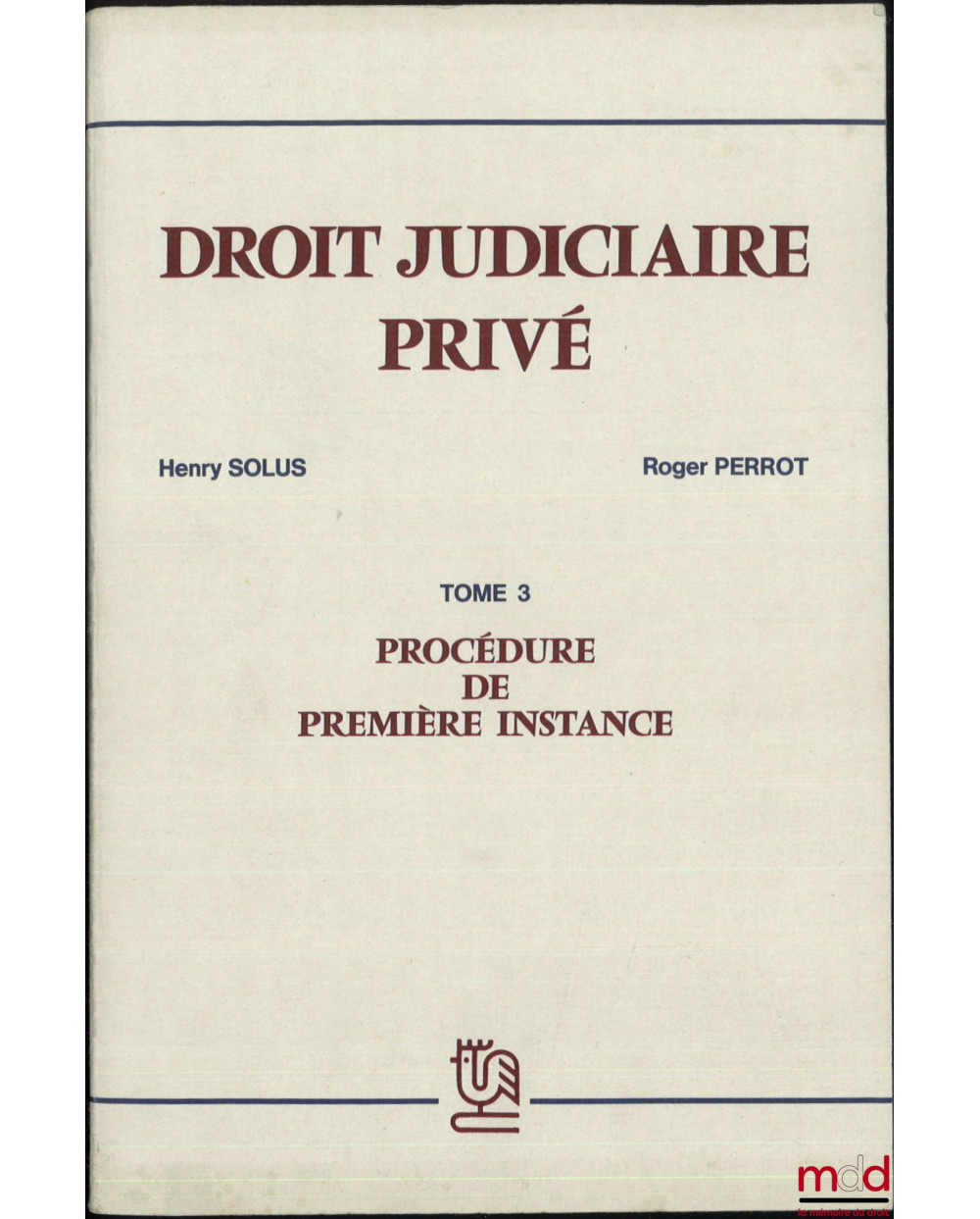 DROIT JUDICIAIRE PRIVÉ, t. III [seul] : PROCÉDURE DE PREMIÈRE INSTANCE