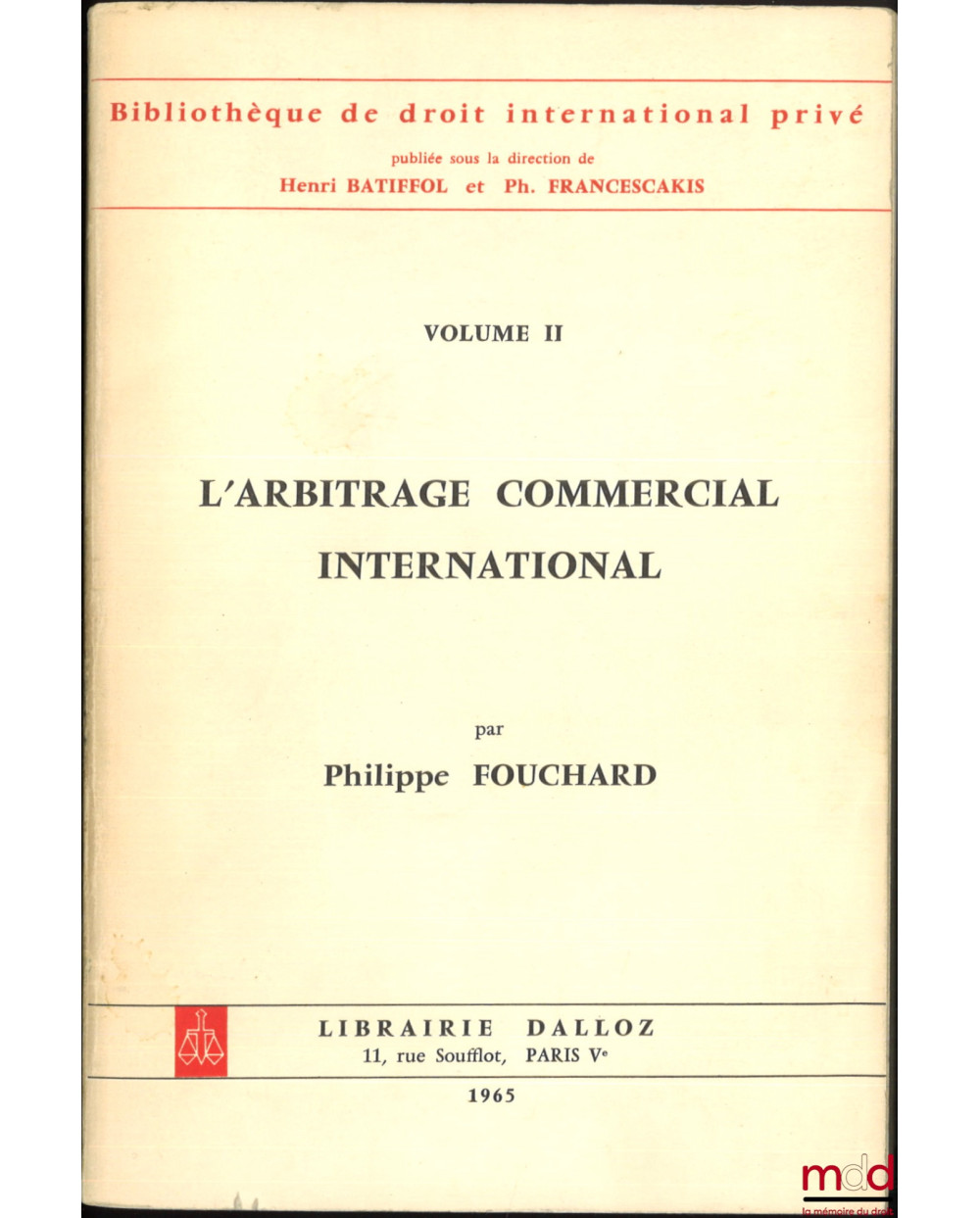 L’ARBITRAGE COMMERCIAL INTERNATIONAL, Préface de B. Goldman, Bibl. de droit intern. privé, vol. II