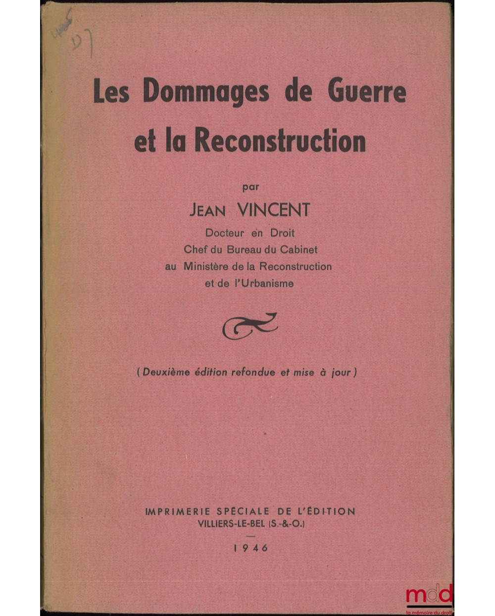 LES DOMMAGES DE GUERRE ET LA RECONSTRUCTION, (Deuxième édition refondue et mise à jour)
