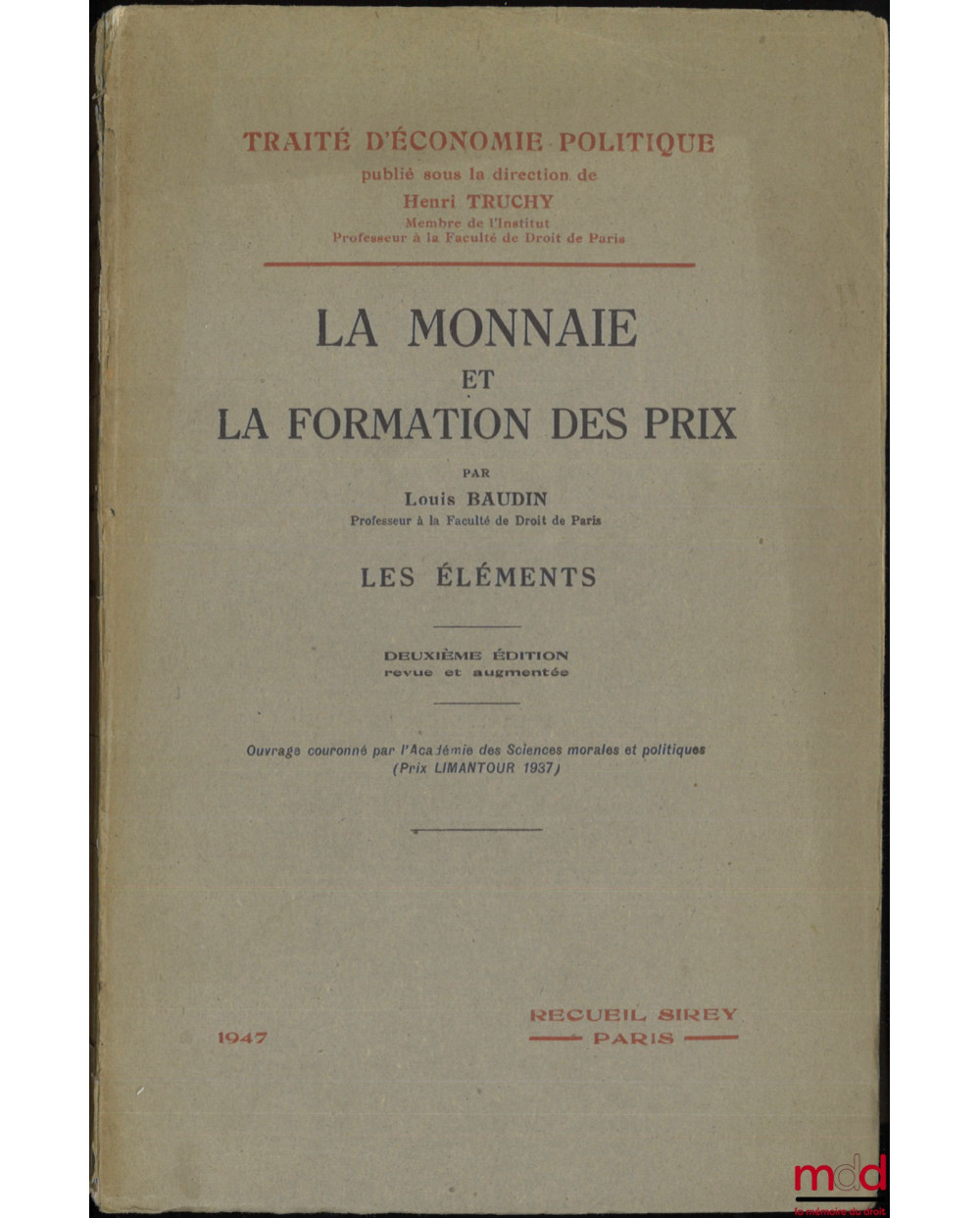 LA MONNAIE ET LA FORMATION DES PRIX, Les éléments, 2e éd. revue et augmentée, Traité d’économie politique