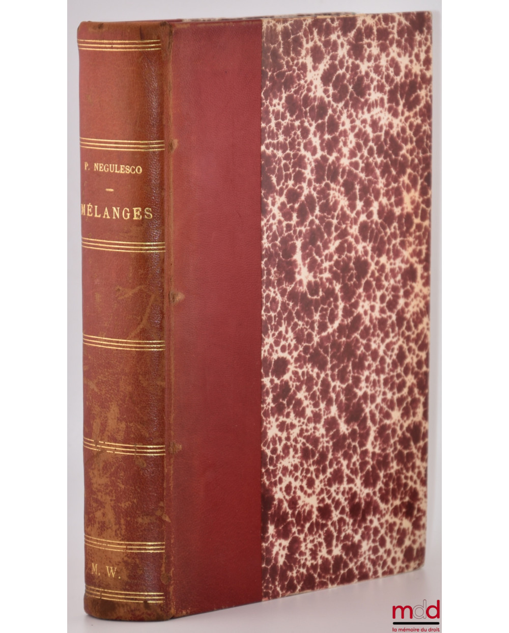 - in-8, demi-basane ocre, tit. doré sur dos lisse orné de triples filets encadrants, rel. au chiffre « M. W. », tr. mouchetées, portrait en N&B du récipiendaire, (dos frotté avec de légères épidermures), int. très frais, [ce livre provient de la bibliothèque personnelle de Marcel et Jean Waline], XI-855 p.