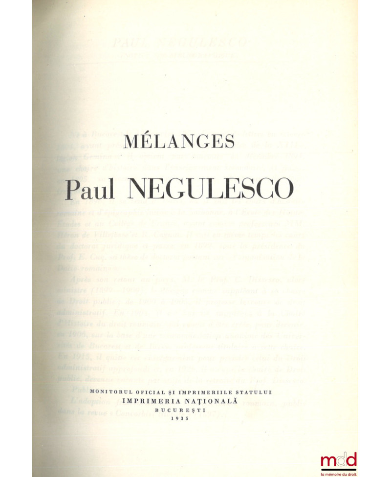 MÉLANGES PAUL NEGULESCO