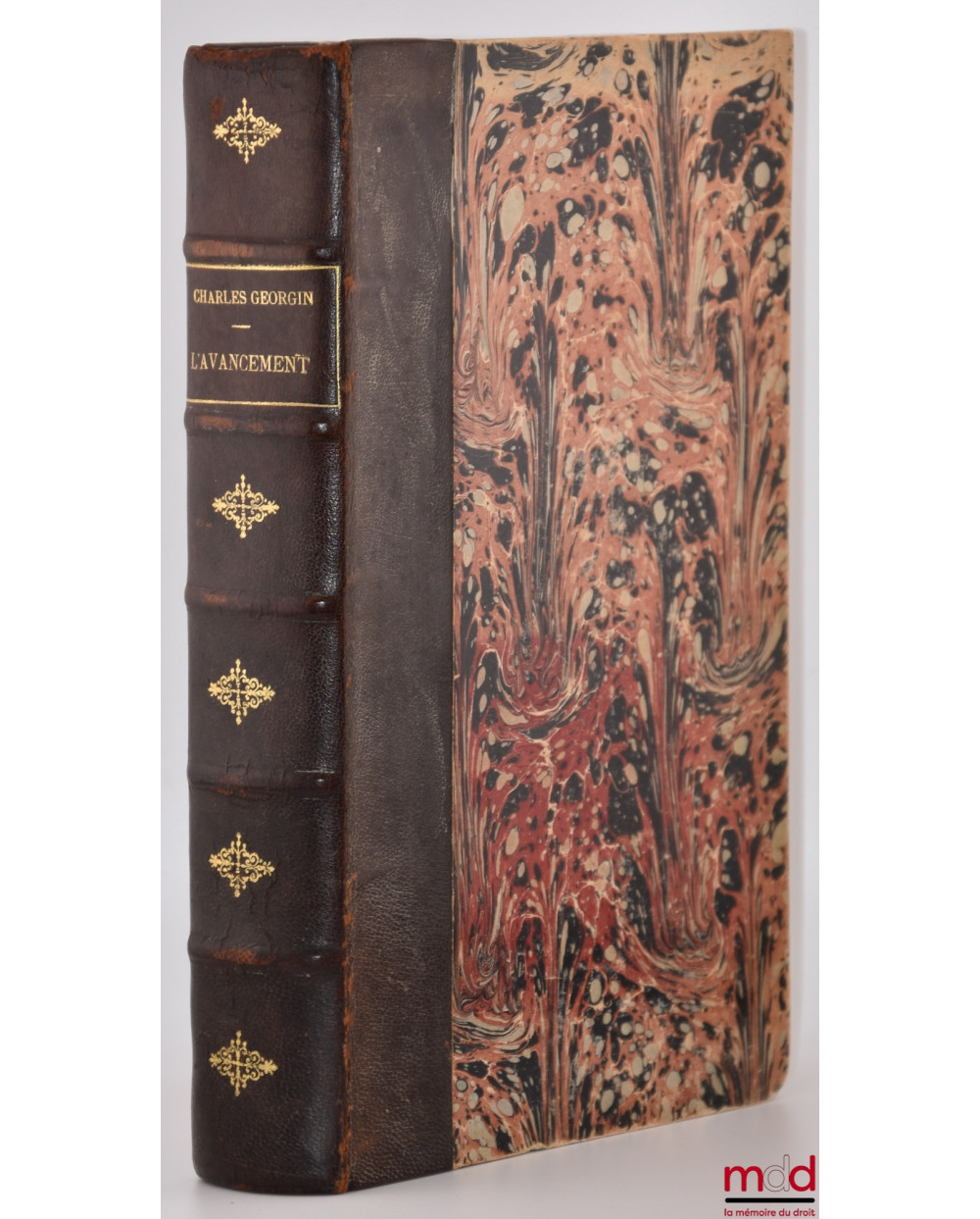 - in-8, demi-chagrin brun, tit. doré encadré d’un filet doré sur dos à 5 nerfs, caissons ornés de fleurons dorés, non massicotés, (rel. lég. usée avec qq. épidermures, coins lég. frottées, qq. rousseurs à l’int.), 930 p.