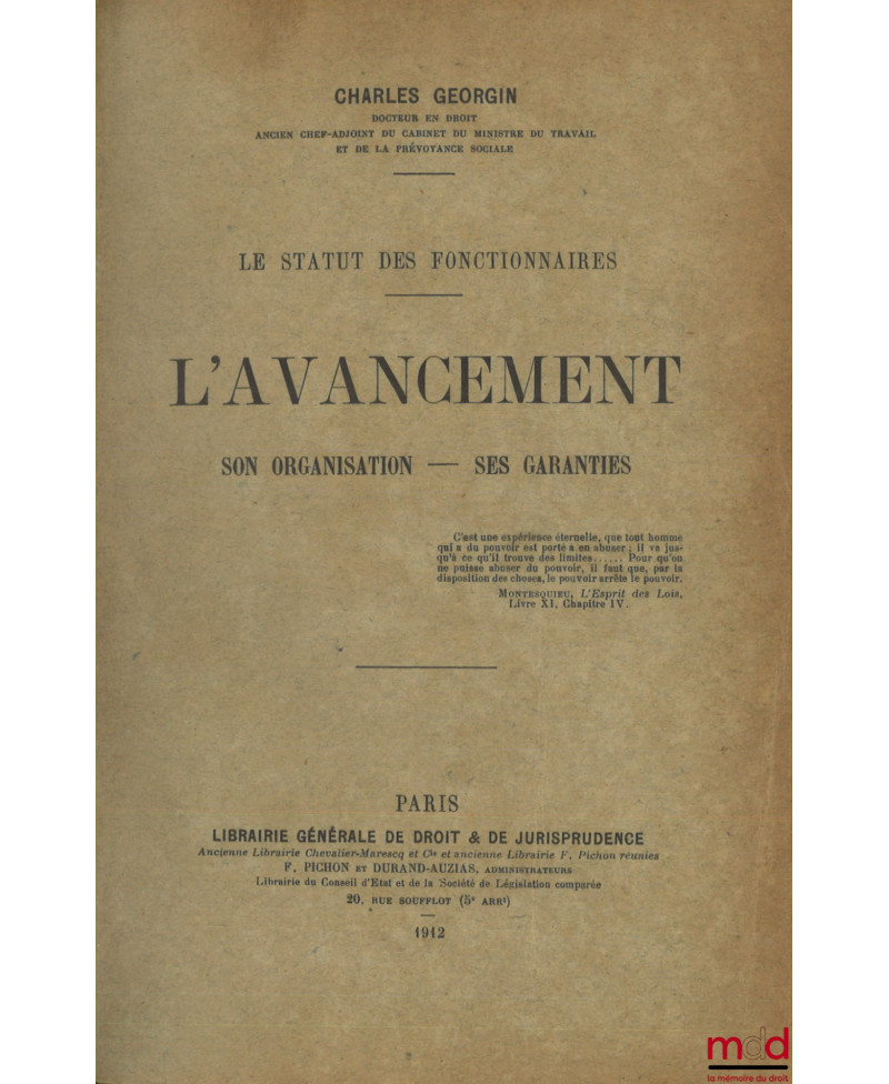 LE STATUT DES FONCTIONNAIRES, L’AVANCEMENT : Son organisation - Ses garanties