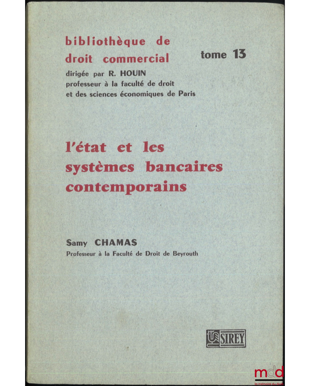 L’ÉTAT ET LES SYSTÈMES BANCAIRES CONTEMPORAINS, Bibl. de droit commercial, t. 13