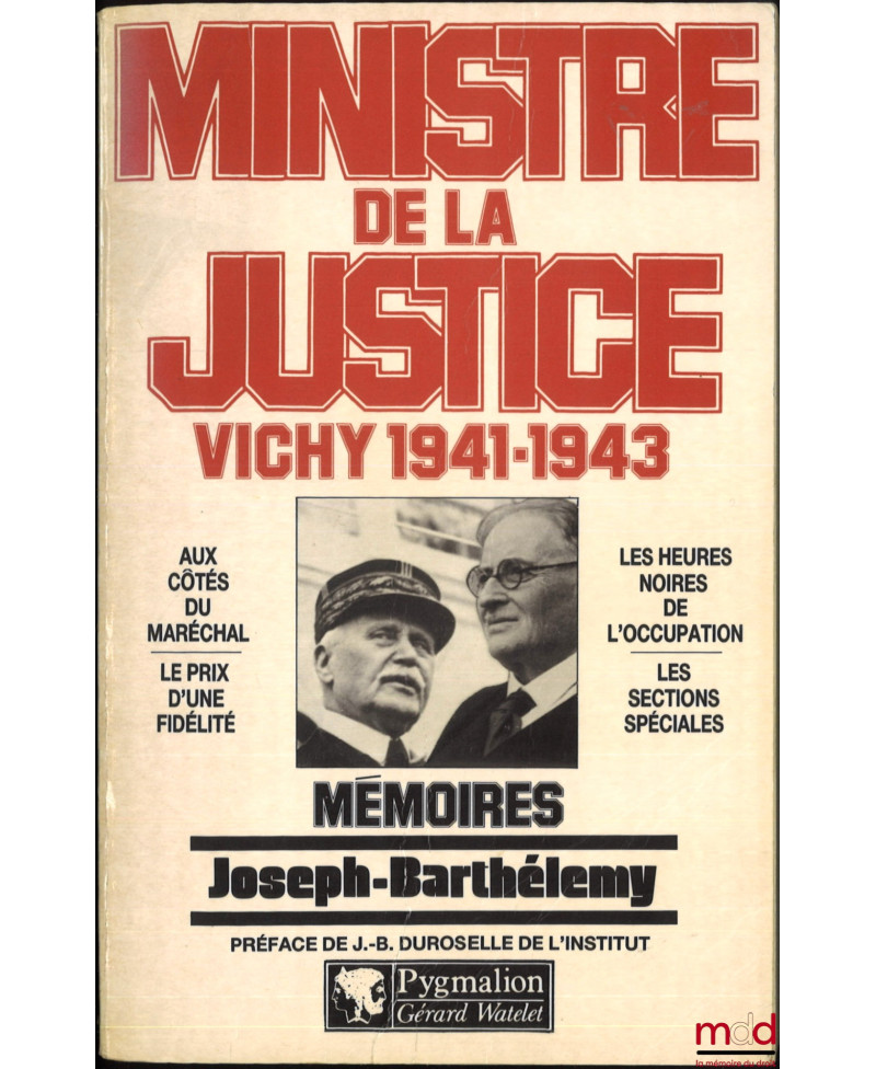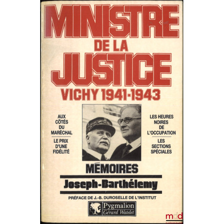 MINISTRE DE LA JUSTICE VICHY 1941-1943, Mémoires, Préface J.-B. Duroselle