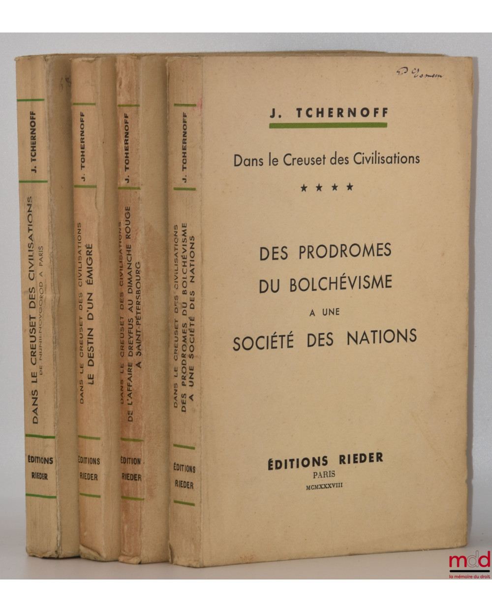 DANS LE CREUSET DES CIVILISATIONS :t. I : De Nijnii-Novgorod à Paris ;t. II : Le destin d’un émigré ;t. III : De l’affaire Dreyfus au dimanche rouge à Saint-Pétersbourg ;t. IV : Des prodromes du Bolchévisme à une société des Nations