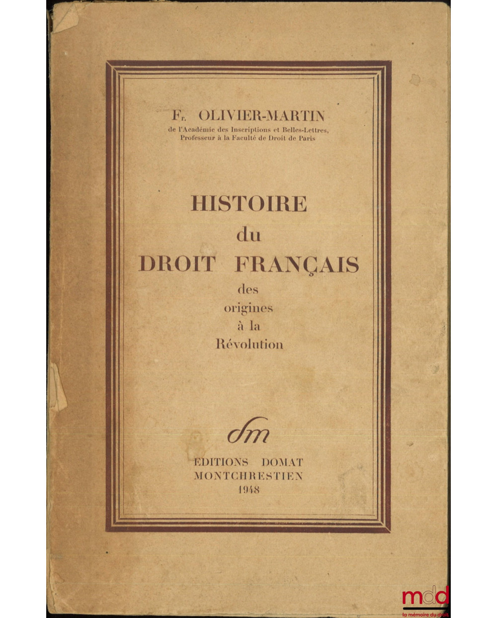 HISTOIRE DU DROIT FRANÇAIS DES ORIGINES À LA RÉVOLUTION