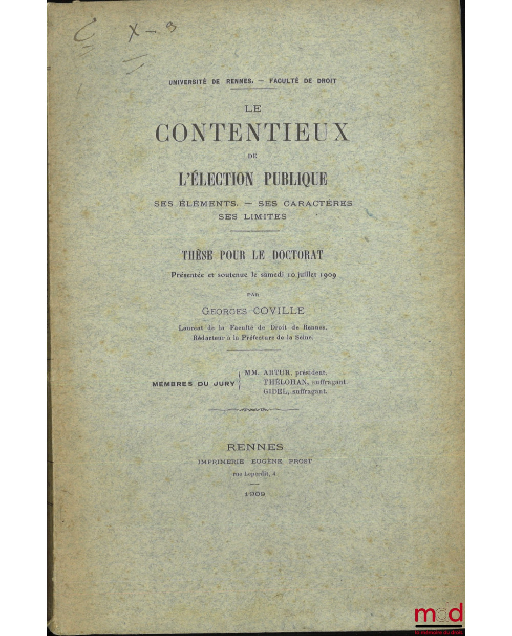 LE CONTENTIEUX DE L’ÉLECTION PUBLIQUE, Ses éléments. – Ses caractères. – Ses limites, Thèse