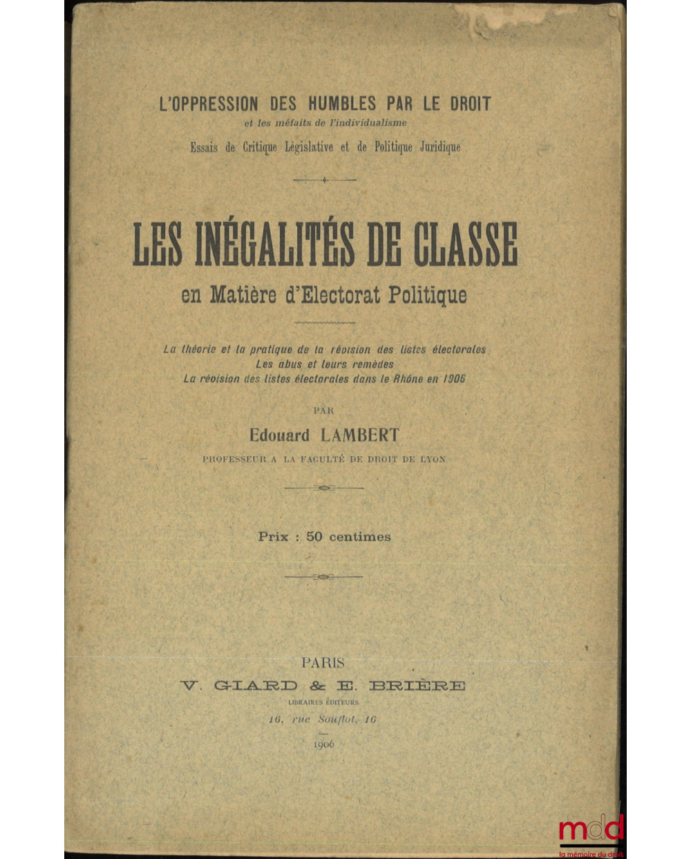 LES INÉGALITÉS DE CLASSE EN MATIÈRE D’ÉLECTORAT POLITIQUE, La théorie et la pratique de la révision des listes électorales, Les abus de leurs remèdes, La révision des listes électorales dans le Rhône en 1906, coll. L’oppression des humbles par le droit