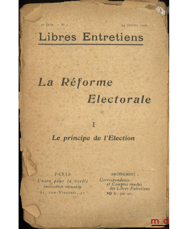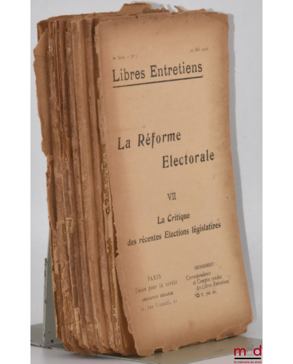 LA RÉFORME ÉLECTORALE, coll. Libres Entretiens, 6e série fasc. n° I à n° VII,