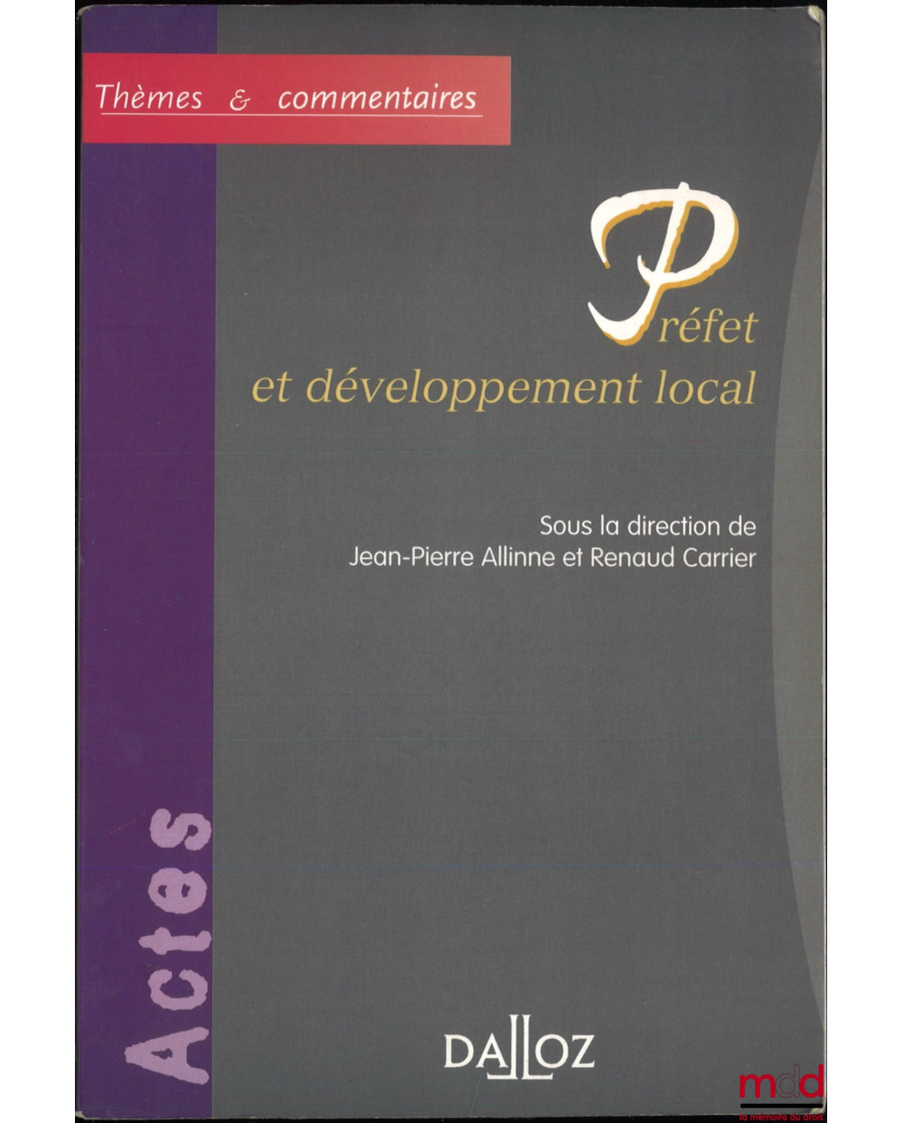 PRÉFET ET DÉVELOPPEMENT LOCAL, dir. Jean-Pierre Allinne et Renaud Carrier