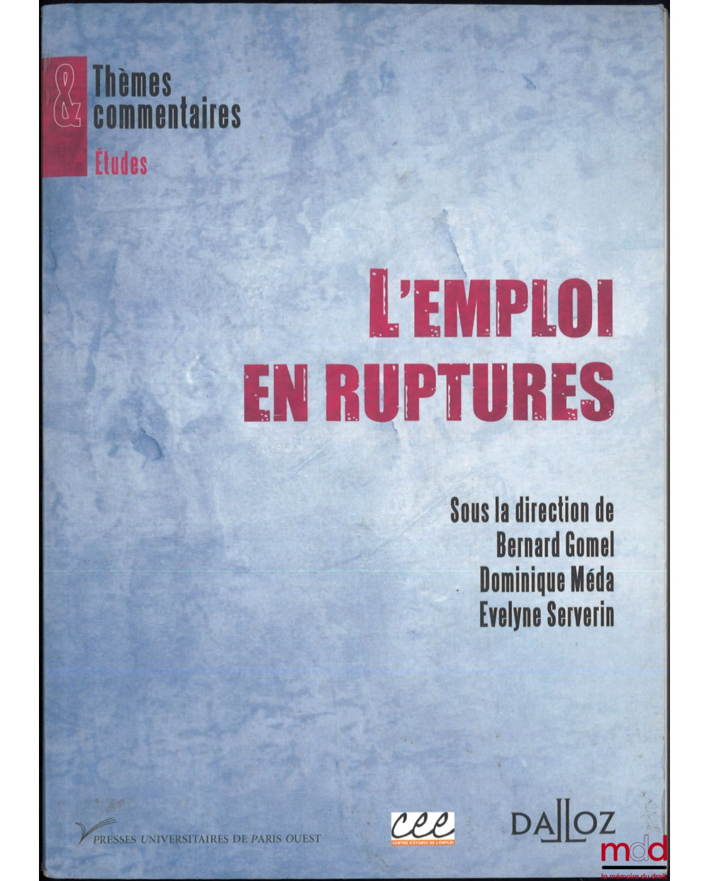 L’EMPLOI EN RUPTURES, dir. Bernard Gomel, Dominique Méda, Évelyne Serverin