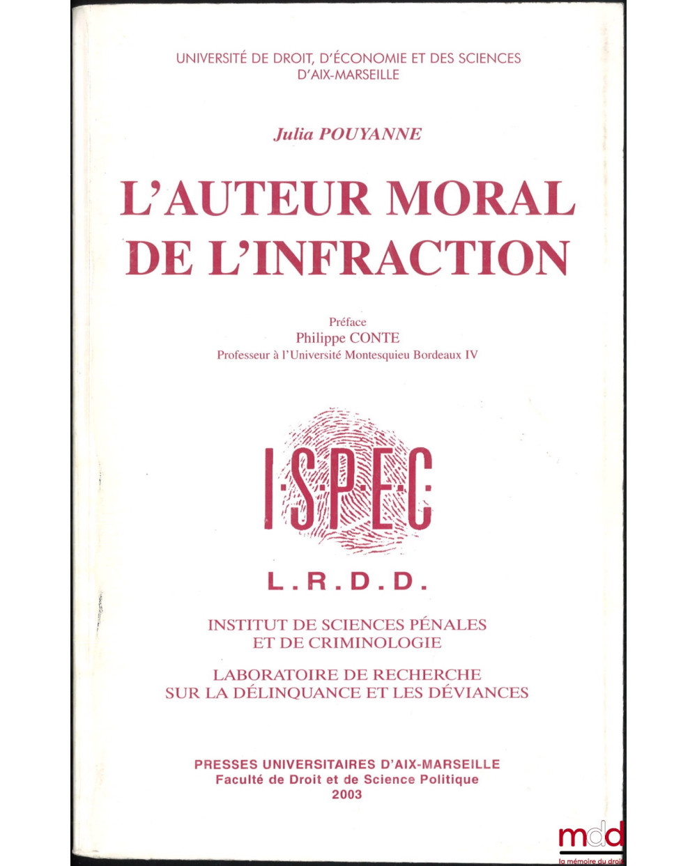 L’AUTEUR MORAL DE L’INFRACTION, Préface Philippe Conte