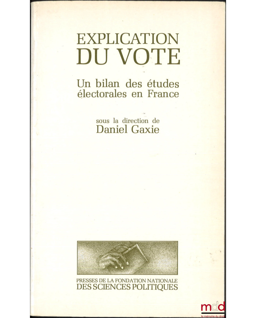 EXPLICATION DU VOTE, Un bilan des études électorales en France, dir. Daniel Gaxie
