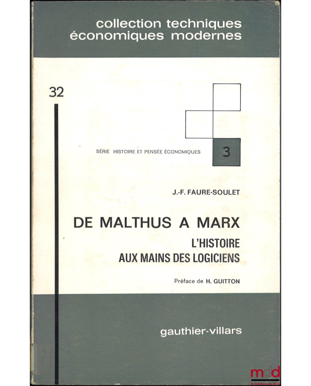 DE MALTHUS À MARX, L’histoire aux mains des logiciens, Préface de H. Guitton, Série histoire et pensée économique, n° 3, coll. Techniques économique modernes, t. 32