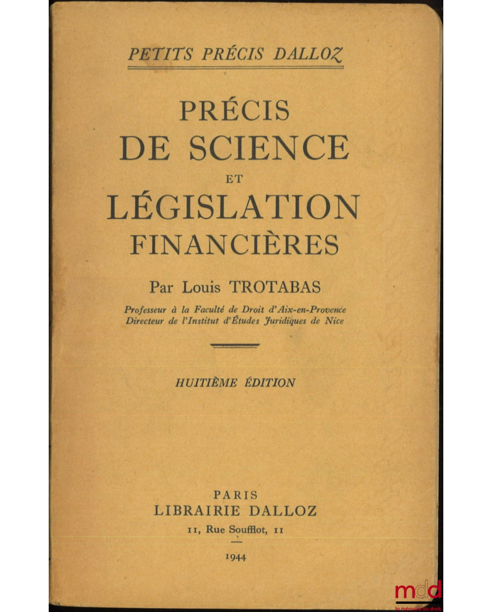 PRÉCIS DE SCIENCE ET LÉGISLATION FINANCIÈRES, 8e éd., Nouveau Tirage, coll. Petits précis Dalloz
