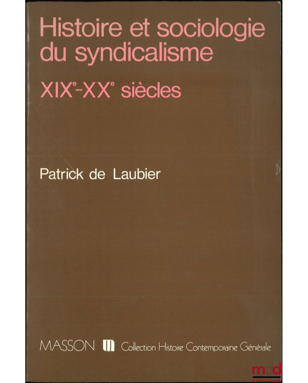 HISTOIRE ET SOCIOLOGIE DU SYNDICALISME, XIXe-XXe siècles, coll. Histoire contemporaine générale