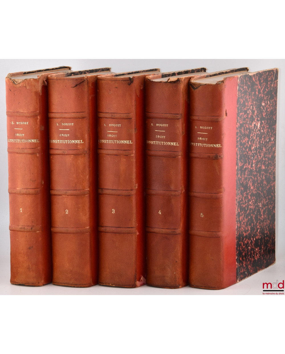 Description : 5 vol. in-8, demi-basane ocre, tit. doré sur dos à quatre nerfs, tr. mouchetées, (dos insolés avec des épidermures, coiffes sup. accidentées voire arrachées, coupes frottées et coins émoussés, très rares soulignures au crayon dans le 1er vol.), int. frais, [ce livre provient de la bibliothèque personnelle de Marcel et Jean Waline], XIX-763 / 888 / 856 / 937 / 703 p.