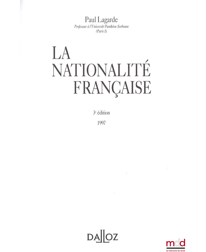 LA NATIONALITÉ FRANÇAISE, 3e éd.
