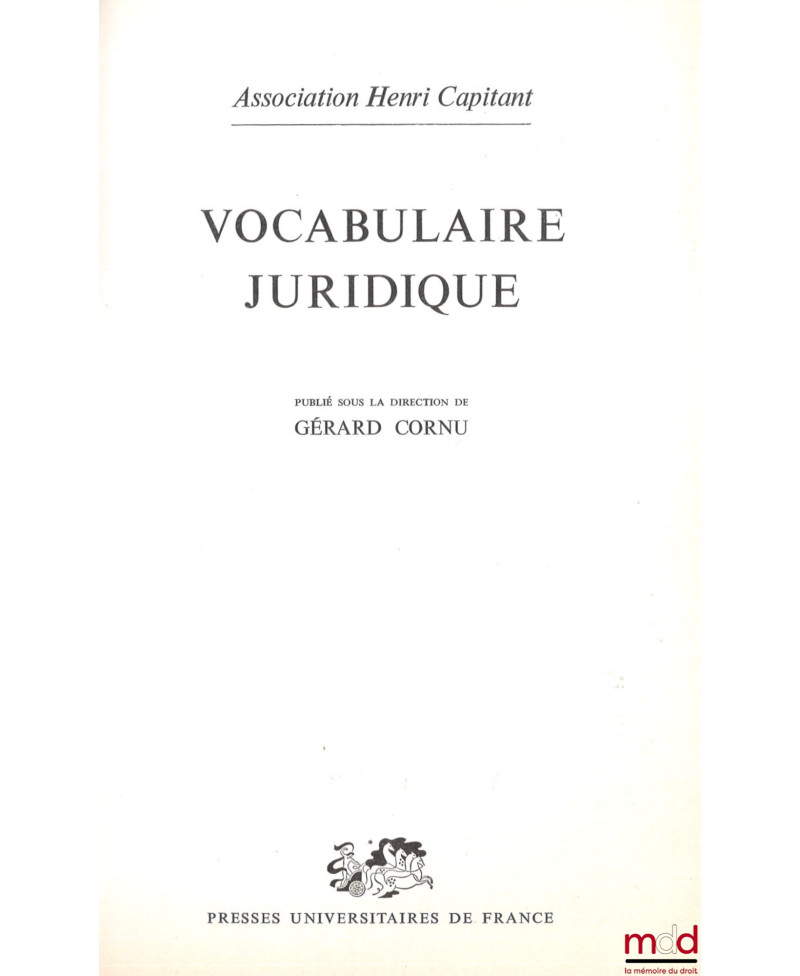 VOCABULAIRE JURIDIQUE, Publié sous la direction de Gérard Cornu
