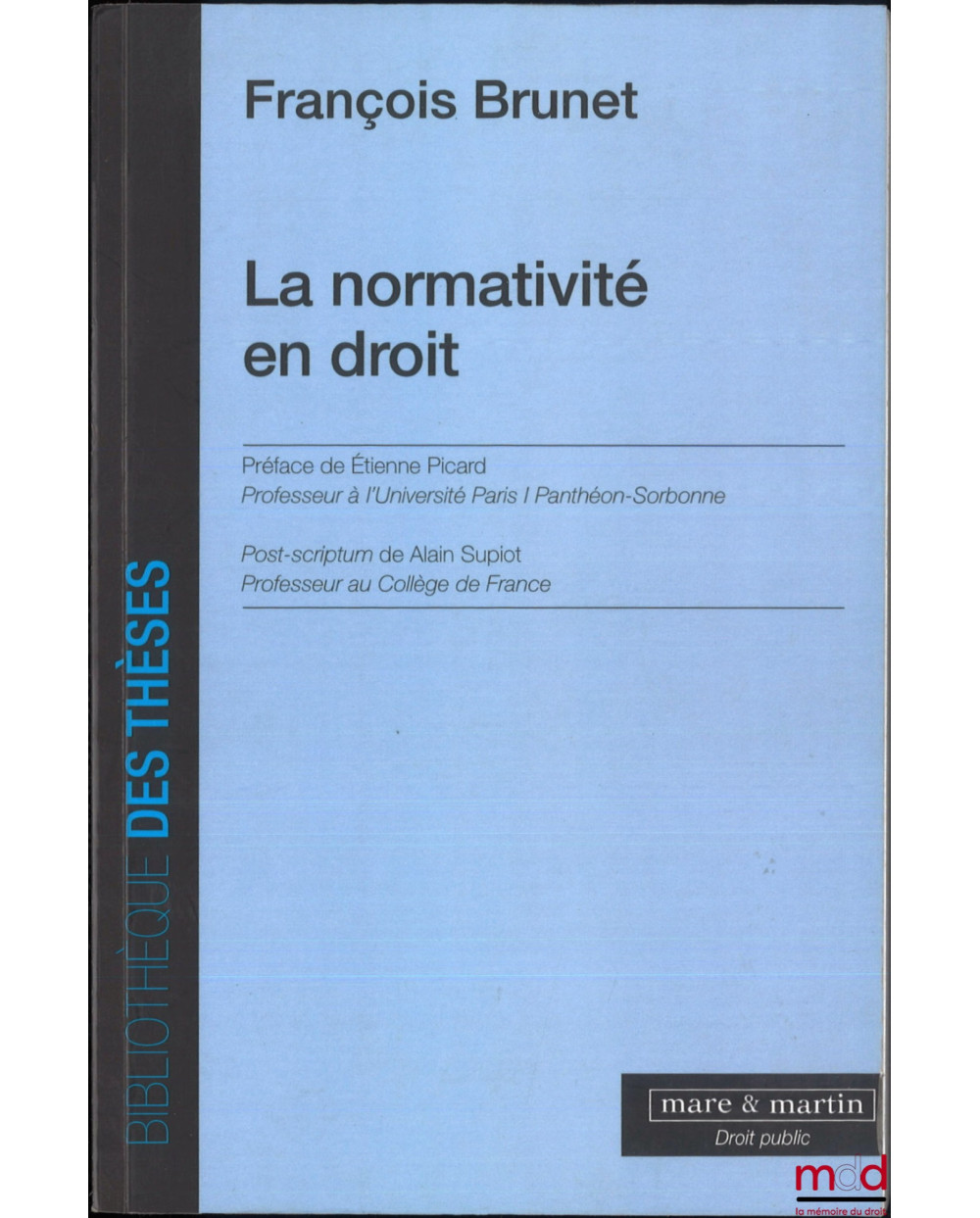 LA NORMATIVITÉ EN DROIT, Préface de Étienne Picard, Post-Scriptum de Alain Supiot