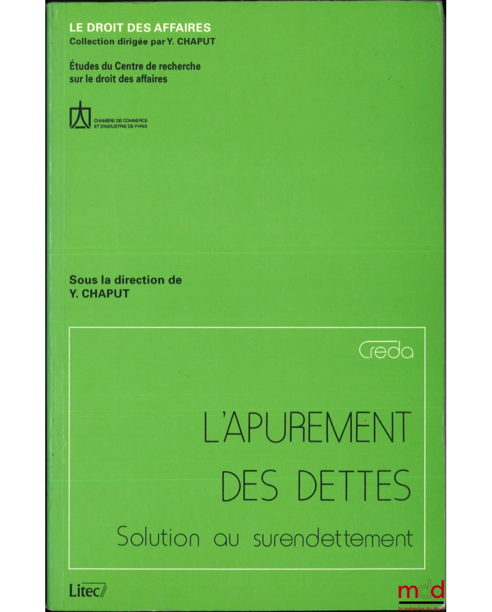 L’APUREMENT DES DETTES, Solution au surendettement, coll. Le droit des affaires, Étude du Centre de recherche sur le droit des affaires, sous le direction de Yves Chaput